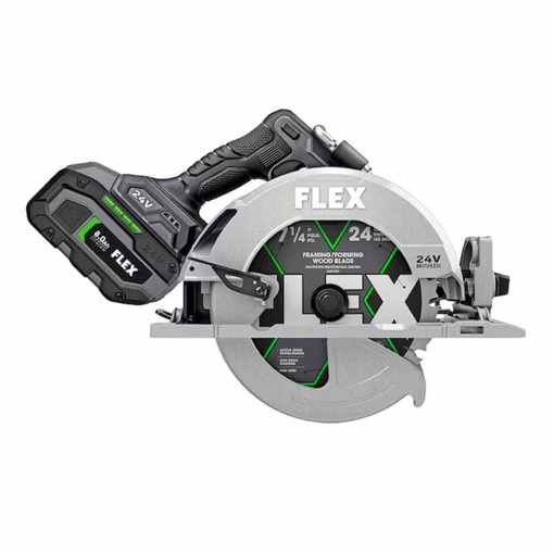 Rip through miles of 2x4s with the FLEX 24V Brushless 7-1/4-in. Circular Saw. This lightweight and durable beast is built for advanced cutting performance and ultimate cutting capacity (up to 2-5/8-in.). Built-in LED light illuminates workpiece providing superior precision and accurate cuts. This saw's powerful motor is maximized by the FLEX Advantage: unmatched 24V battery power, runtime and fast charging speed. All backed by a 5-year end-to-end warranty.