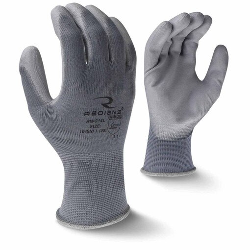 Radians RWG14XXL 13 Gauge Gray Polyester Shell Gloves with Gray PU Palm Coating, 2XL (Pair)