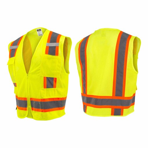 Radians SV6-2ZGM-L Surveyor Two-Tone Hi-Vis Mesh Safety Vest, Type R Class 2, Zipper Closure, Large